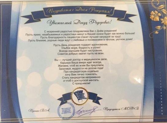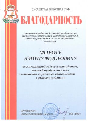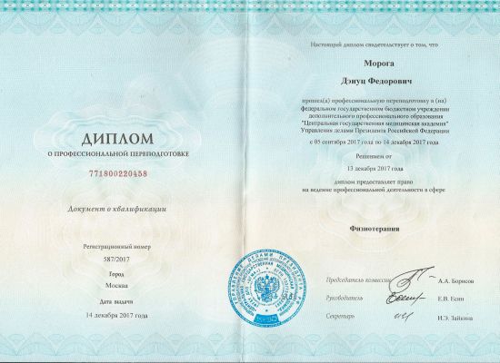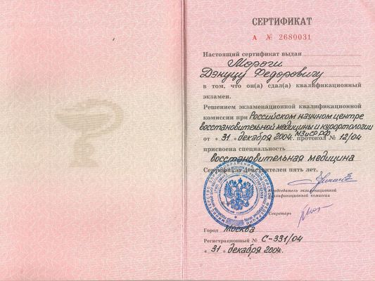 «Давно занимаюсь здоровьем своей спины (межпозвоночные грыжи), слышал разные мнения квалифицированных экспертов (остеопата, невролога, физиотерапевта, ортопеда, специалиста по восстановительной медицине), и Дэнуц Федорович поразил меня тем, что обладает компетенциями по всем вышеперечисленным направлениям, рассказав мне полную "картину" буквально за полчаса приема. Получил детальный план действий, рекомендации и, самое главное, заряд оптимизма…»