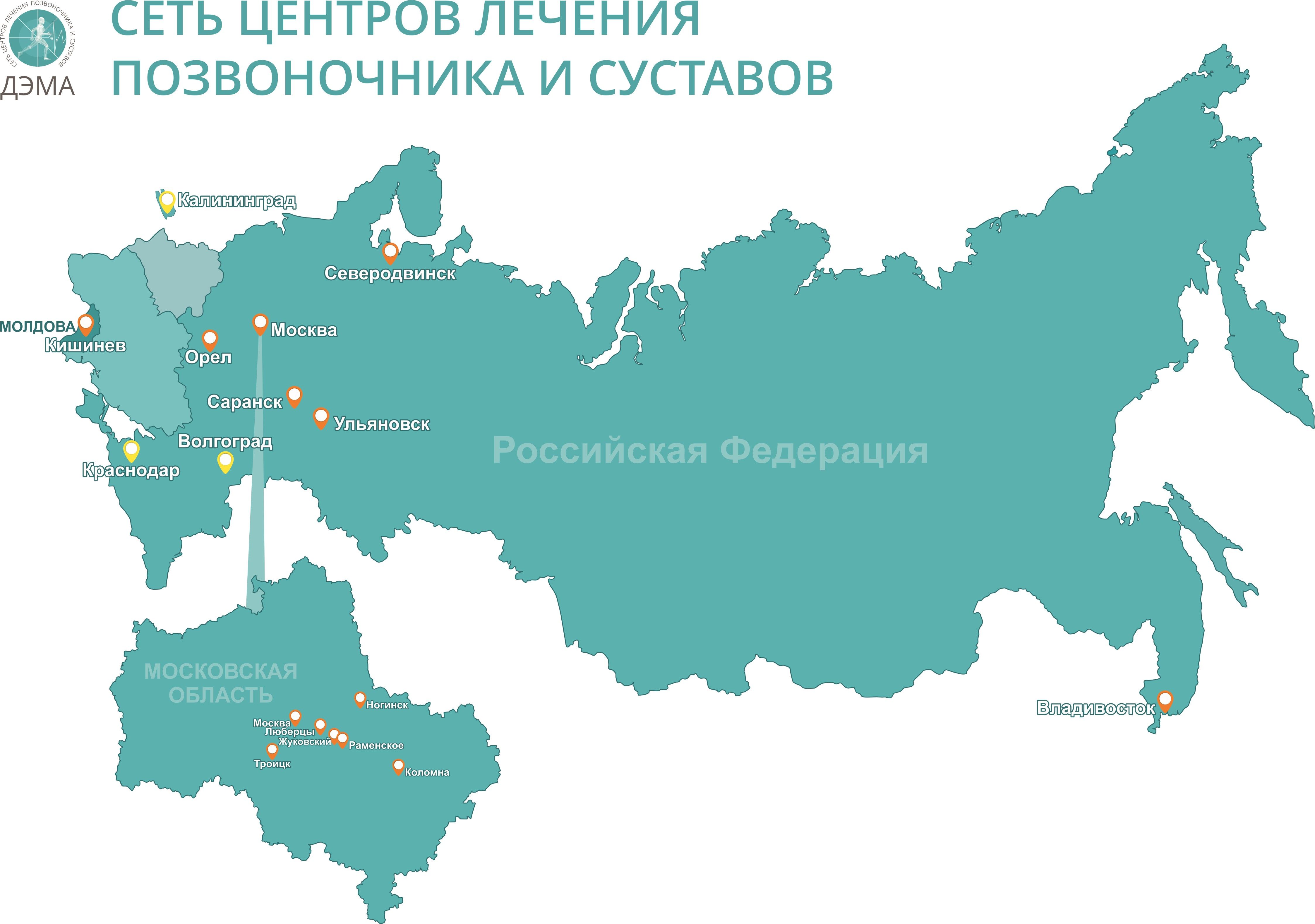Собственная сеть “ДЭМА” появилась в конце нулевых весьма стихийно. Одной клиники, открытой в 2005-м году, оказалось недостаточно, ведь примерно четверть пациентов не просто устраняет какую-то временную проблему со здоровьем, а делает занятия у нас частью образа своей жизни. Людям нравится удобное расположение центра рядом с домом или работой и уютная камерная атмосфера, где высоко квалифицированные лечащие врачи, массажисты и инструкторы со временем становятся друзьями.